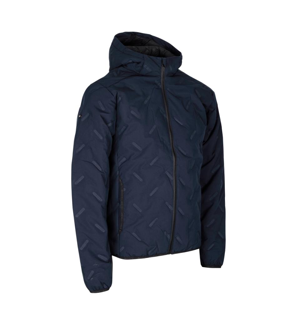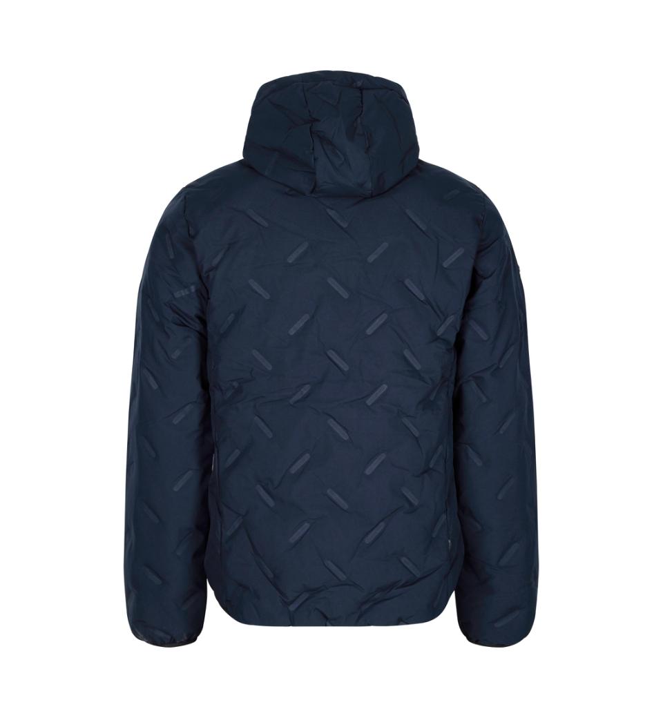 Smart og sporty jakke til hverdag eller aktiv fritid. Jakken har et flot svejset quiltet mønster og blød vattering, der sørger for at holde på varmen og gør jakken komfortabel at have på. Sidelommer med formet åbning og indvendige sømme dækket af bånd. Hætten kan justeres, så vinden holdes ude. Jakken fuldendes på ærmer og underkant med en blød elastisk tape for behagelig afslutning. Fyldet i jakken er af recycled polyester.Tætsiddende model.