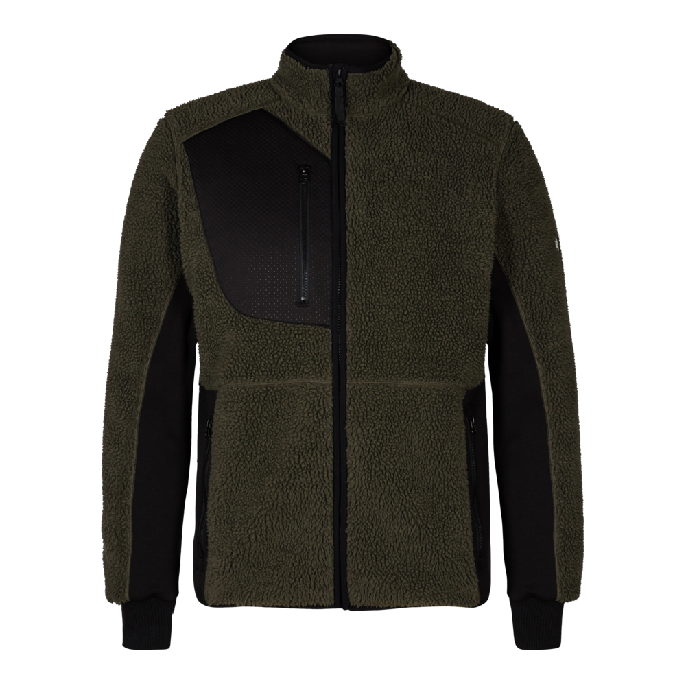 Smart og lækker fiberjakke med behageligt strækfor, der gør den mere anvendelig som overgangsjakke. Jakken har høj krave og lynlås i front. Strækbart panel i ærmer/siden. To stiklommer samt brystlomme – alle med lynlås. To store indvendige lommer lukket med velcro. Jakken har elastisk afslutning i bunden samt ribafslutning ved ærmerne.