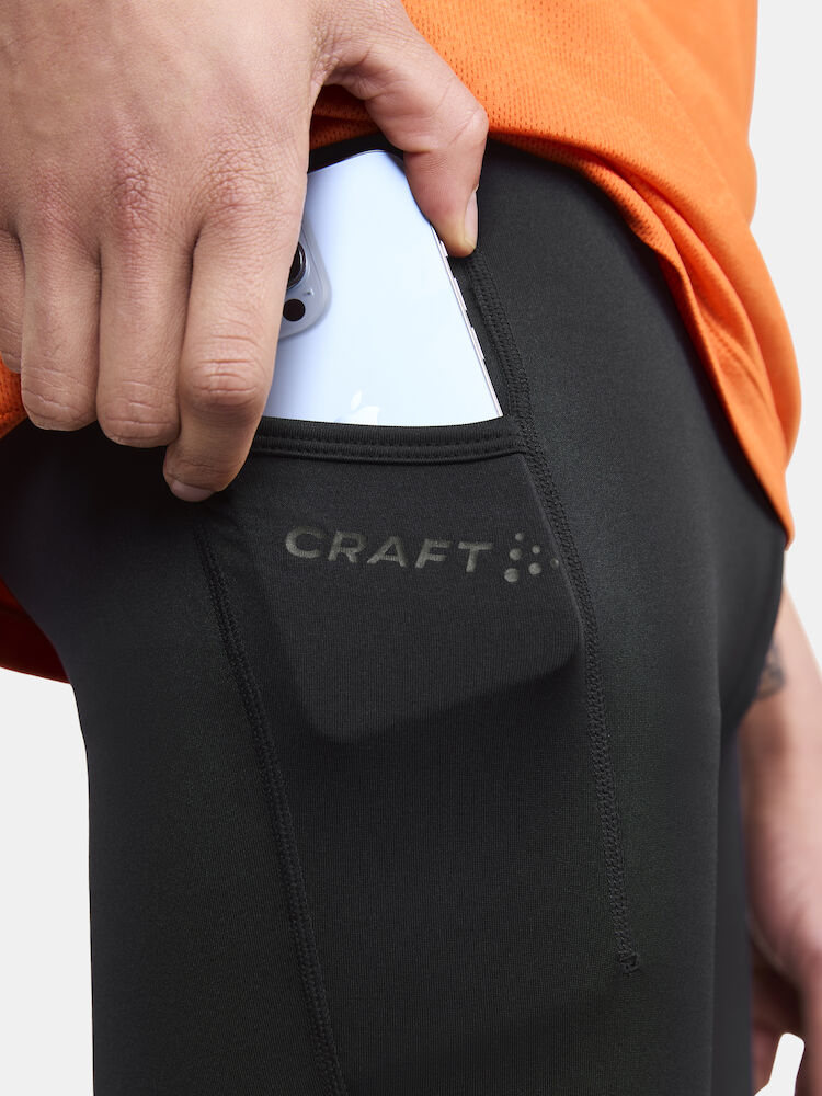 Tights med perfekt pasform. • Tights med rigtig god pasform i behagelig polyester og elastan • Elastisk linning med indvendig snøre • Stor mobillomme ved højre ben • Skjult lynlås bagpå • Lynlåse nederste i benender • Craft logo foran • Craft six dot logo bagpå