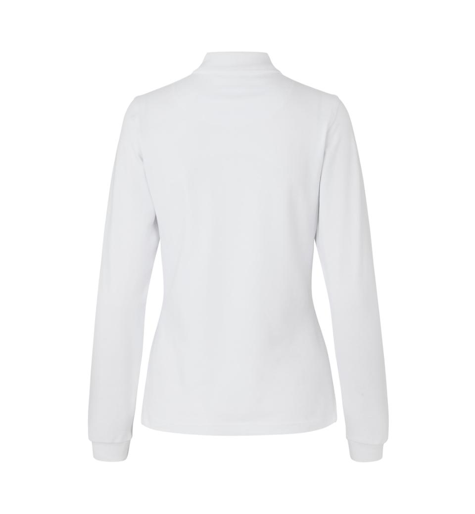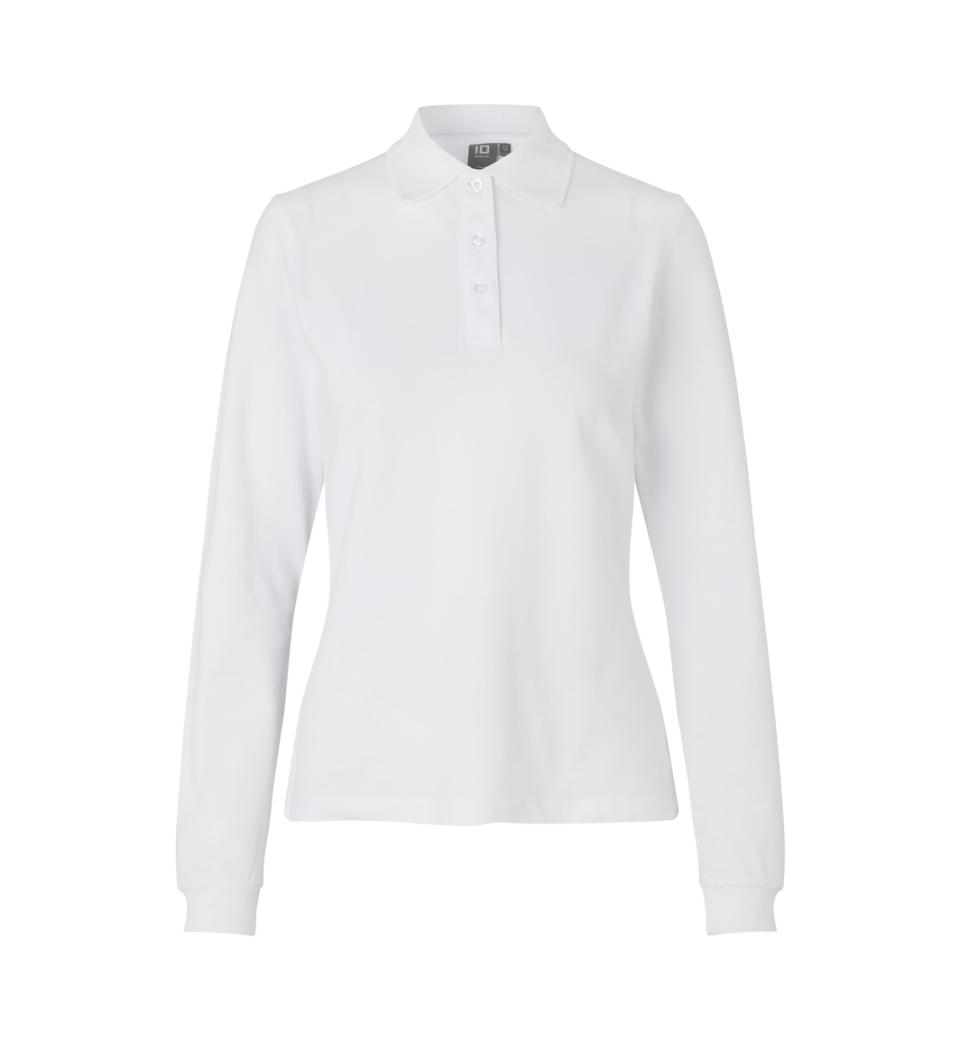 Tidløs poloshirt i pique kvalitet med stretch. Lange ærmer med elastisk rib afslutning. Indvendig med nakkespejl og nakkebånd. Tone i tone knaplukning.