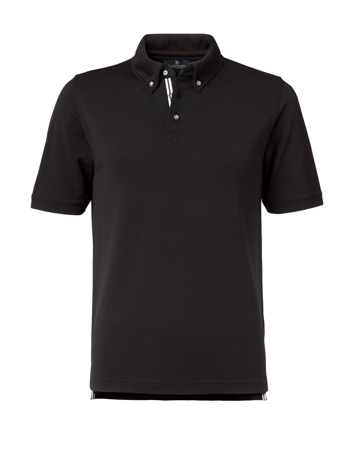 Polo shirt med knap stolpelukning med kontrast farvet bånd.