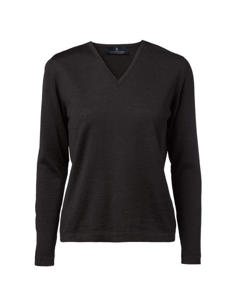 V-neck pullover med tubular ved udskæring, forneden og ærmer.
