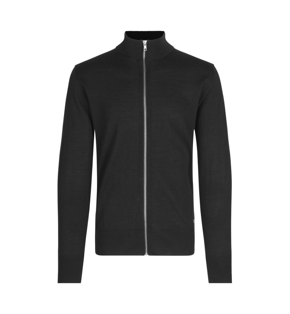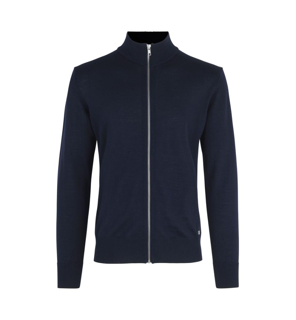 Elegant strikket cardigan med lynlås og høj krave i en dejlig, blød mulesingfri merinould. Smarte detaljer ved halsen og skuldrene for et klassisk og tidløst look. Perfekt til både arbejde og fritid. Skal maskinvaskes på uldprogram - trækkes let i facon efter vask