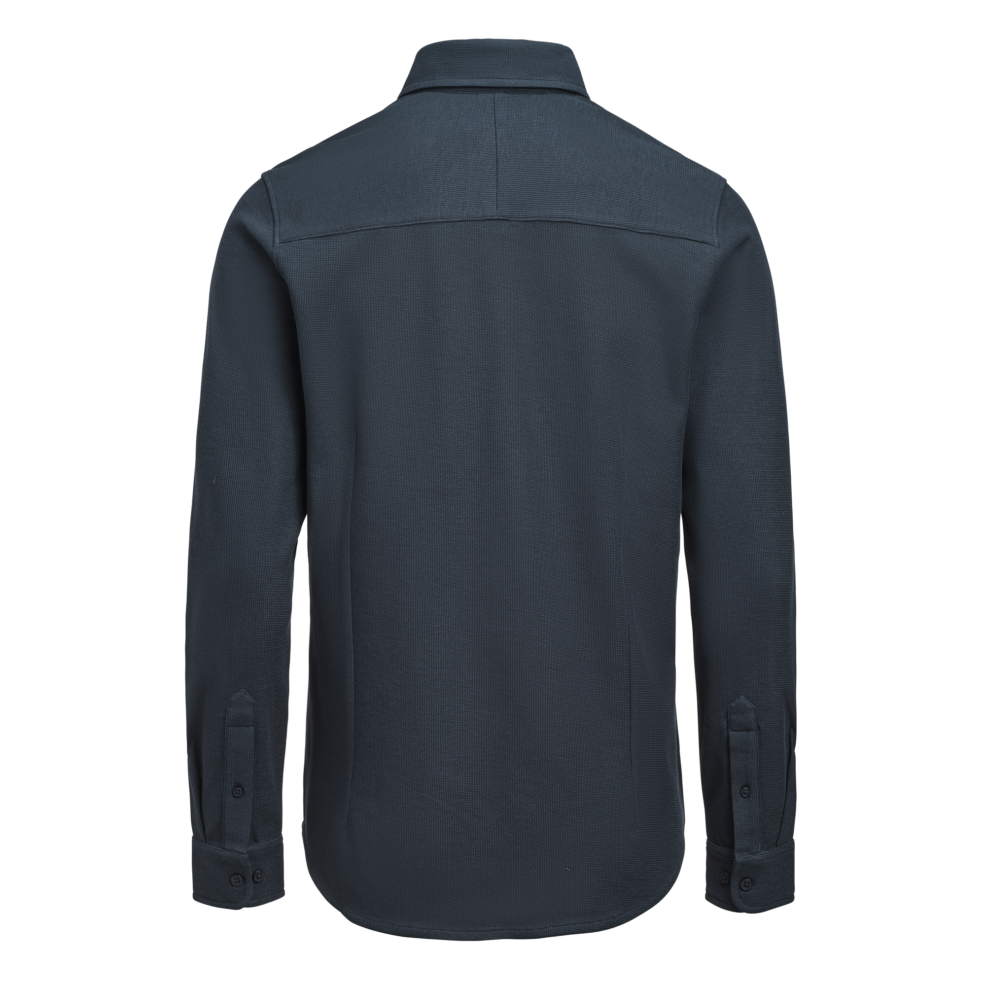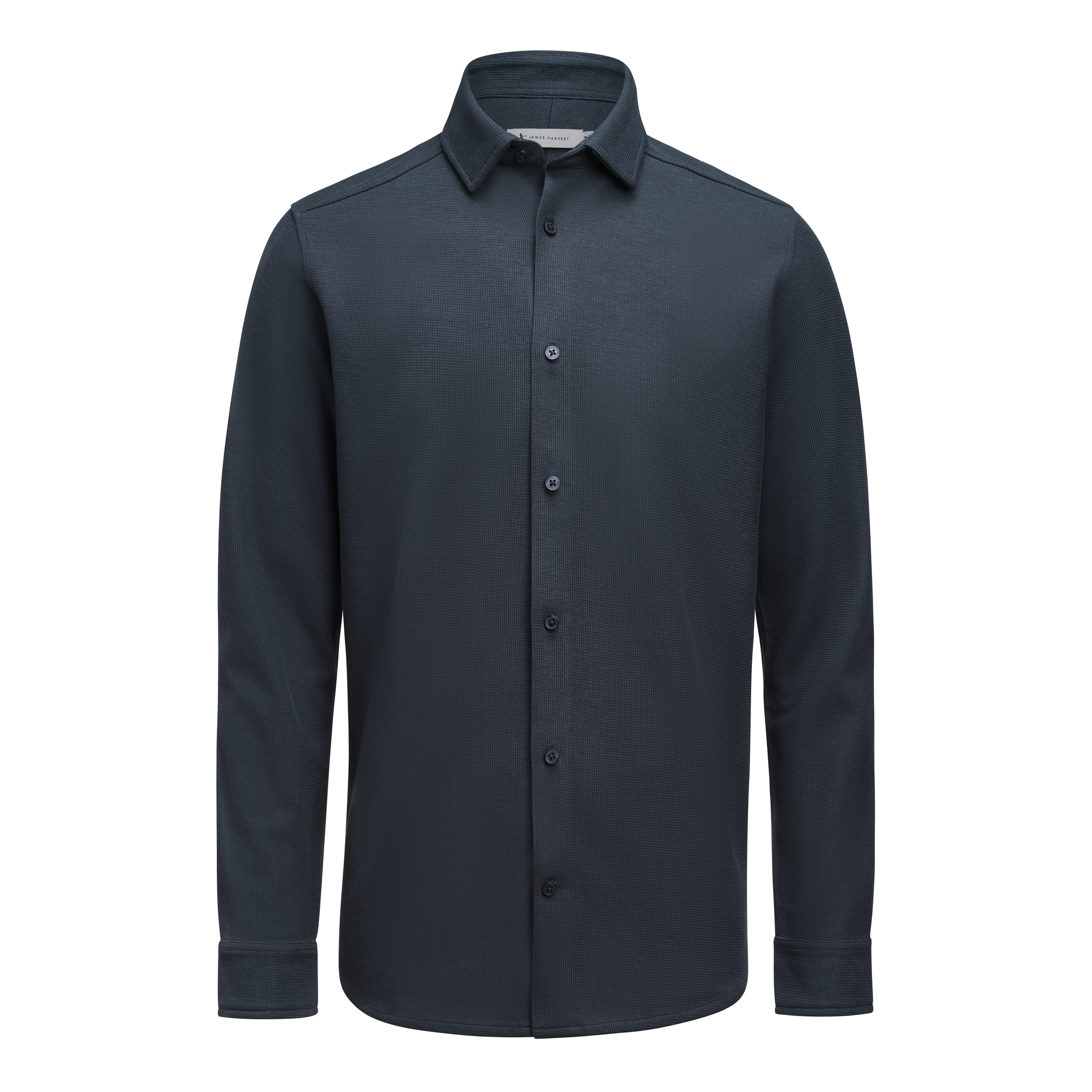 Hicksville er en moderne skjorte lavet i et vaffelstrikket struktureret materiale. Stoffet består af økologisk bomuld og genanvendt polyester. Skjorten har en skjult button-down krave og tone-i-tone knapper for et rent og stilrent udtryk. Fås i en figursyet pasform.