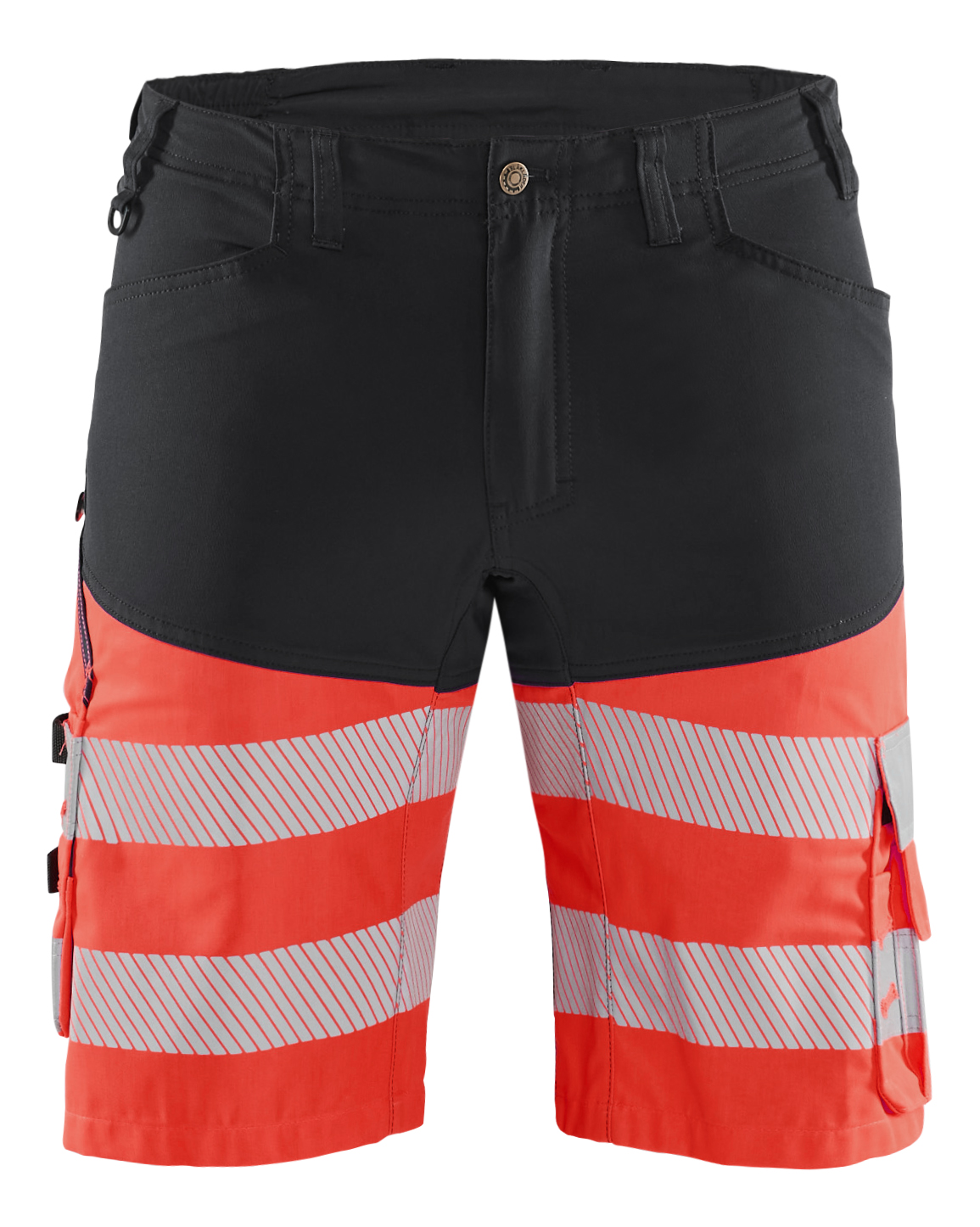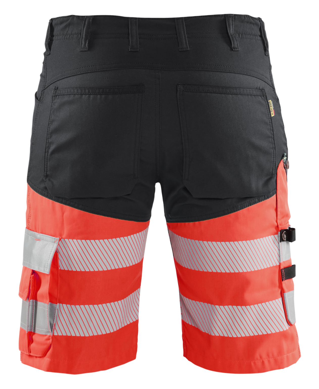 High vis certificerede shorts i klasse 1 med stretchpaneler foran, bagpå og i skridt. Modellen har en elastisk talje, der resulterer i fremragende komfort. Funktioner som CORDURA®-forstærket baglommer og tommestoklomme, lårlomme med mobillomme og ID-kortlomme. Certificeret i henhold til EN ISO 20471, klasse 1. Samcertificeringskategori V.