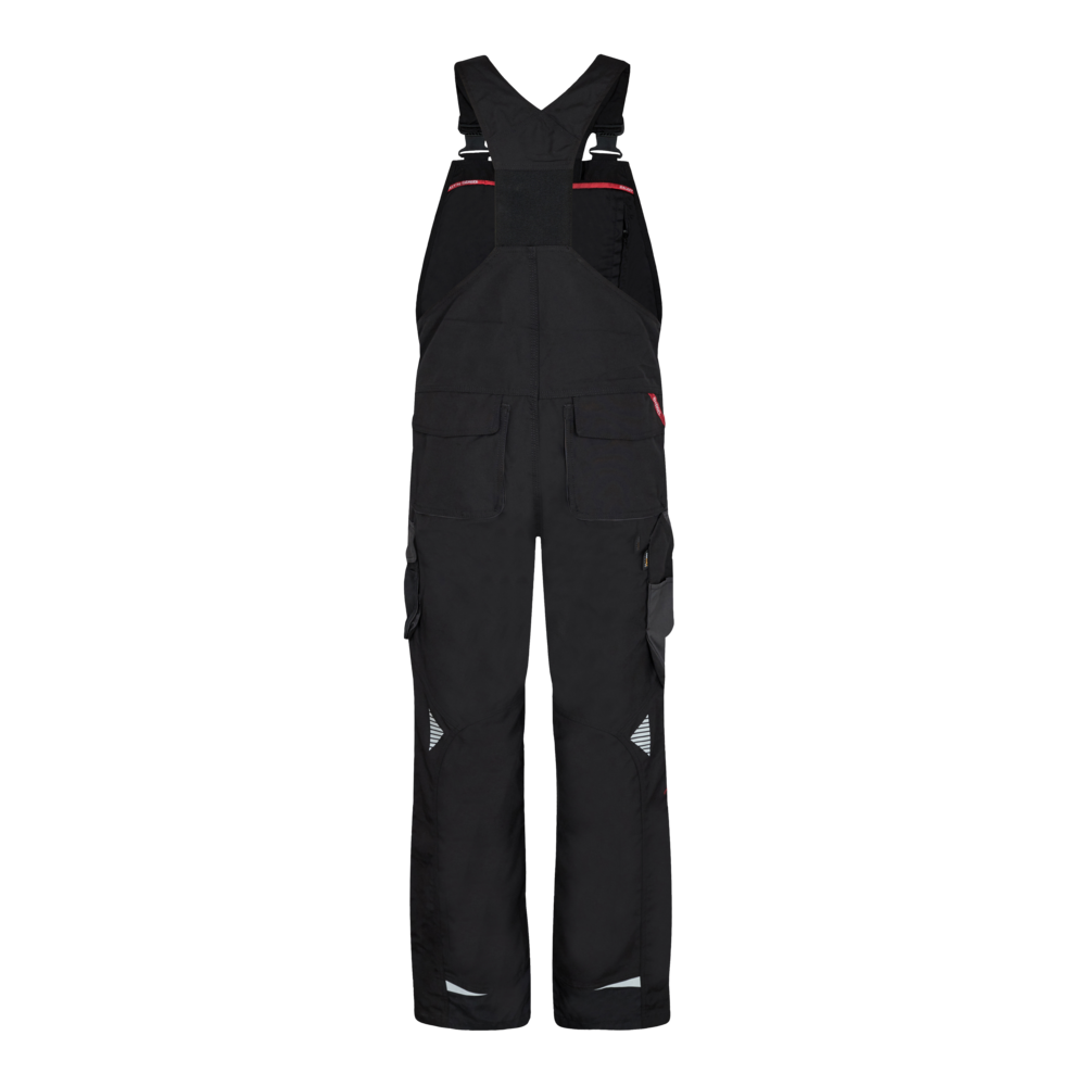 Funktionel overall med mange detaljer. Optimal pasform med bl.a. ergonomisk formet knæparti og panel i indersøm, der giver en behagelig skridtsøm. Bredt elastisk rygstykke og regulerbare seler. Smæklomme med ekstra indstik til f.eks skriveredskaber. Under lommeklappen findes en strop med D-ring til fæstning af f.eks. ID-kort. Rummelig lynlåslomme på bagsiden af smækken. To rummelige skrålommer foran. To rummelige baglommer med klap og velcrolukning. Lårlomme med lynlåslomme til f.eks. mobiltelefon samt ekstra mindre lomme. Lårlommen har boxeffekt, hvilket gør den meget rummelig og endvidere har den løsthængende bund for øget bevægelighed. Tommestoklomme med ekstra inddelinger og forstærket bund. Også tommestoklommen har frithængende bund for øget bevægelighed. Knæforstærkning/knælomme med velcrolukning forneden samt to indstillingsmuligheder til knæpude. Forstærkning i bunden af buksebenene både bagpå og foran for ekstra slidstyrke. Reflekser ved knæ og nederst på buksebenene for øget synlighed. Egnet til industrivask.