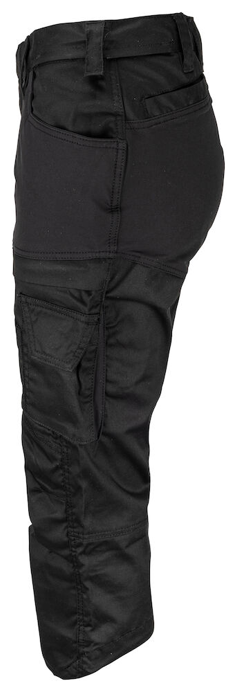 Knickers i damemodel med fuld stretch, der giver maksimal bevægelsesfrihed og komfort. Moderne pasform. Lårlommer på begge sider med lynlås, telefonlomme på begge sider med velcrolukning. Tommestoklomme i højre side. Indvendige baglommer. Forbøjede knæ. Indvendige lommer til knæbeskyttere, justerbar i to højdeniveauer. Bredere bælteløkke bagpå for at forhindre tryk fra bæltet. D-ring foran. Skjult beslag til hængelommer som købes separat (ref. artikel 9042) Skjult knap foran.