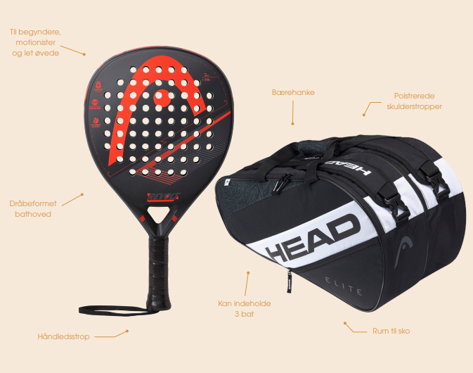 Brand HEAD Revolt Padel Bat Farve BK Str. L45,5 cm, T3,8 cm, 350 g Elite Padel Supercombi Bag Farve BKWH.