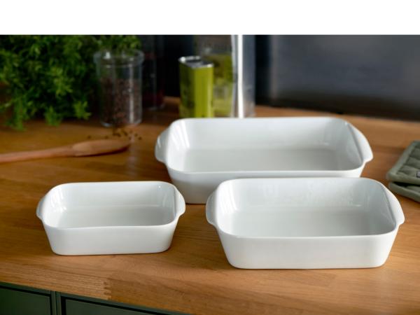Sæt med kvadratiske fade på 17 x 17 cm, 22 x 22 cm og 27 x 27 cm med håndtag til ovnretter og til servering. Fra ovn til bord Pillivuyts fade og forme præsenterer maden på smukkeste vis og skaber en fuldendt kulinarisk oplevelse fra ovn til bord. Porcelænet er ikke kun særdeles modstandsdygtigt over for slag og stød. Pillivuyts ovnfaste porcelæn tåler også termisk chok fra -30 °C til +350 °C – så du kan tage fadet ud af fryseren og sætte det direkte i en varm ovn. Du kan derfor uden problemer forberede en tærte, en lasagne eller noget helt tredje og derefter fryse fadet ned, så du kan komme det i den brandvarme ovn, når det passer dig. Porcelænets unikke egenskaber skyldes den særlige porcelænsmasse og den ekstremt høje temperatur, det bliver brændt ved. Pillivuyts porcelæn har desuden den gode egenskab, at det optager og fordeler varmen på optimal vis – maden holder sig derfor varm længe efter, at den er taget ud af ovnen. Kvadratfadsæt nr. 2, 3 og 4 Serie Originale Hvid