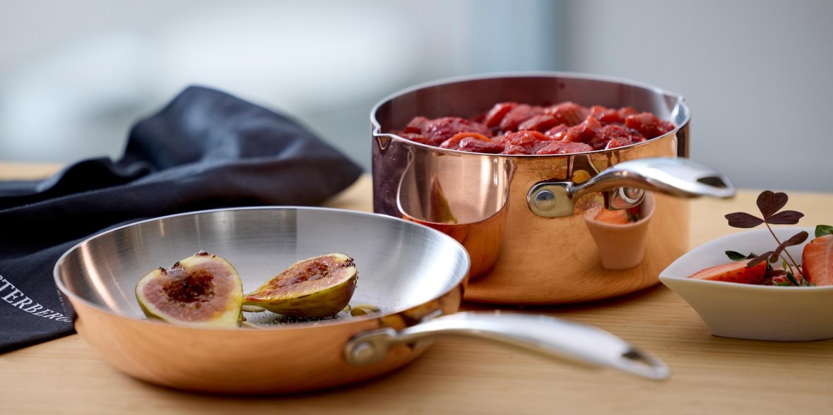 Køkkengrej af kobber er både tidløst, stilfuldt og funktionelt. Blomsterbergs kobberkasseroller og stegepander er fremstillet i kobber og rustfrit stål. En kraftig aluminiumkerne sikrer gode brugsegenskaber, og den udvendige kobber giver sammen med et flot stålgreb et eksklusivt udtryk. Passer til alle varmekilder, også induktion, og kan desuden tåle ovn op til 220 °C.