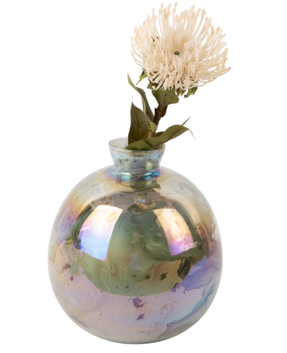 Flot vase i perle look jungle grøn farve.