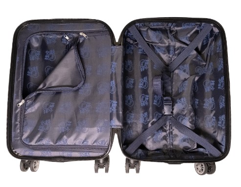 Produceret af slidstærkt ABS-plast. Lav vægt. indretningen består af en mellemvæg og pakkestropper. Fire dobbelthjul. Justerbar teleskophåndtag. Godkendt kombinationslås. Fåes i sort eller olivgrøn.