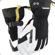 Handsken har en lang manchet med velcrolukning ved håndleddet og vindfang for personlig justering. Håndledsremmen giver mulighed for, at handsken bliver hængende lige ved hånden, hvis der er behov for at udføre opgaver uden handskerne.