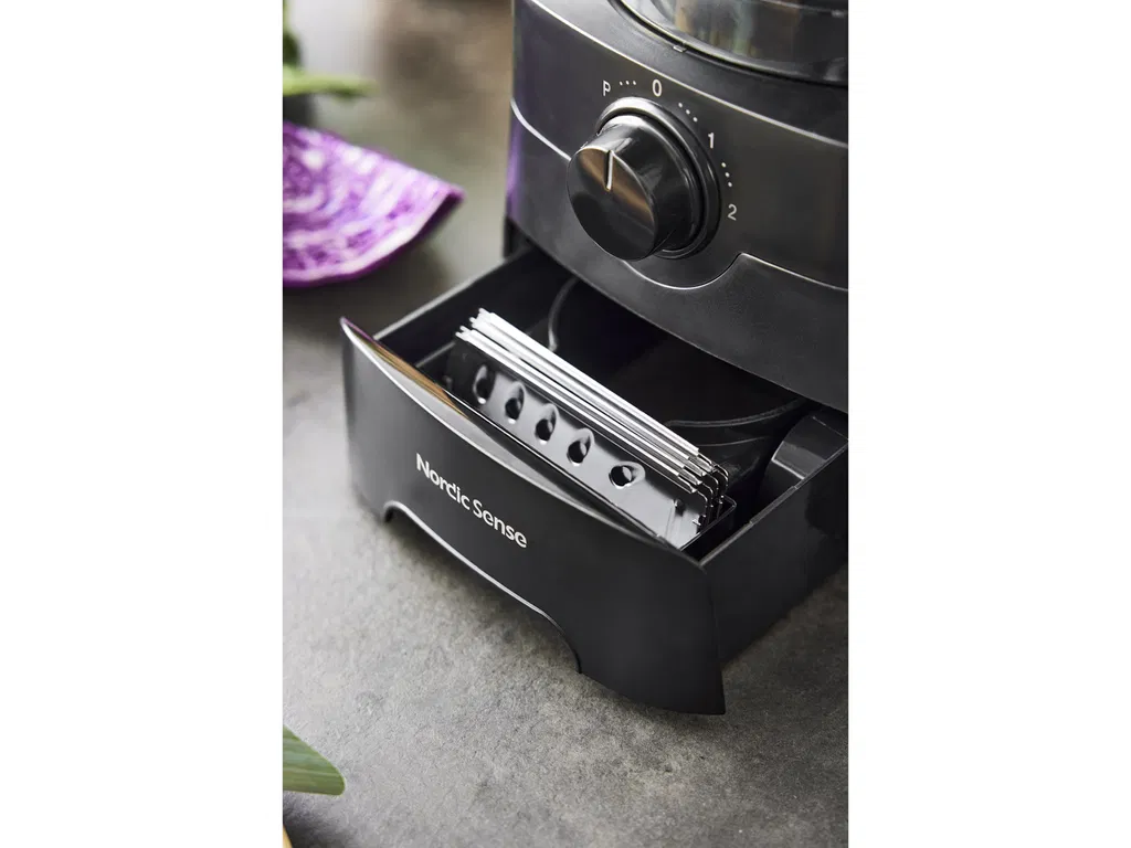 Foodprocessor med 3,5 liters skål, som gør madlavningen nem og effektiv. Den store indføringstragt kan håndtere større grøntsagsstykker, og med 3 hastigheder og pulse-funktion kan du tilpasse den til enhver opgave. Med 5 rive-/snittejern og 2 forskellige knive får du masser af muligheder – uanset om du skal snitte, rive, hakke, røre, blande eller ælte. Alt tilbehør opbevares nemt i den indbyggede skuffe. Kort om foodprocesserens funktioner: • 3,5 liters skål • 5 rive-/snittejern • 2 knive • 3 hastigheder • Opbevaringsskuffe til tilbehør