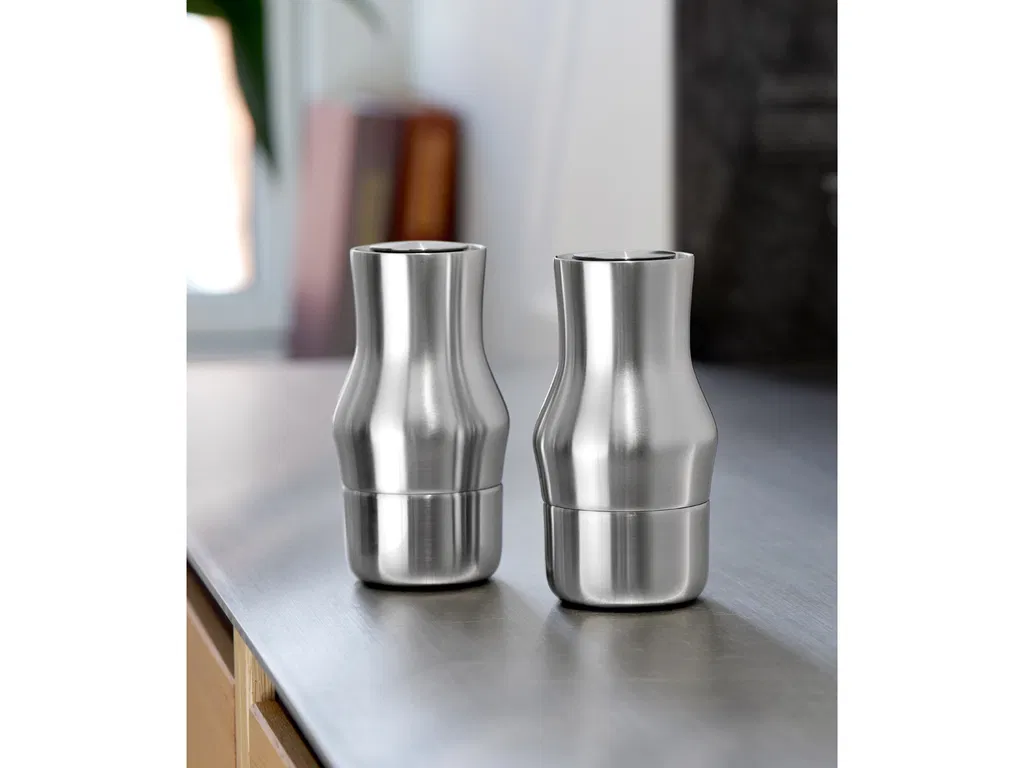 Den smukke, minimalistiske kværn med satinfinish i mat rustfrit stål bidrager til en elegant sammenhæng i borddækningen. Den keramiske CrushGrind® mekanisme er placeret i kværnens top, og på den måde sikrer det gennemtænkte design, at der ikke drysser krydderier på bordet, når kværnen sættes ned. Placeringen af kværnemekanismen giver flere fordele: tyngdekraften fører naturligt krydderierne ind i kværnen og giver en mere ensartet formaling. Samtidig ligger kværnen godt i hånden, så du har et behageligt greb og bedre kontrol. Med fire indstillinger fra fin til grov er det også nemt at justere krydringen efter forskellige præferencer. Den keramiske kværnmekanisme klarer både salt, peber og tørrede krydderier og sørger for, at smagene virkelig kommer til deres ret. Designet er inspireret af naturen omkring den lille landsby Dorotea. Her har isen skabt et landskab af bjerge, dale og store, åbne områder, der tilsammen danner bløde, flydende former, som endeløst erstatter hinanden. Denne overgang overses ofte, men ikke desto mindre ligger den eventyrlige og overraskende del af designet netop her. Med sine minimalistiske og organiske former kombinerer Dorotea-kollektionen tradition og håndværk med design på internationalt plan. Dorotea-kværnene er produceret af genanvendt rustfrit stål. Det betyder, at det rustfrie stål populært sagt har levet et tidligere liv. Rustfrit stål kan nemlig ud over at være enormt holdbart smeltes om og omdannes til nye produkter uden at miste sine egenskaber og kvaliteter. Rustfrit stål kan genanvendes i det uendelige og er således et materiale, der bliver ved med at give. Design: Monica Förster Dorotea modtog den internationale designpris German Design Award i 2025 i kategorien Excellent Product Design.