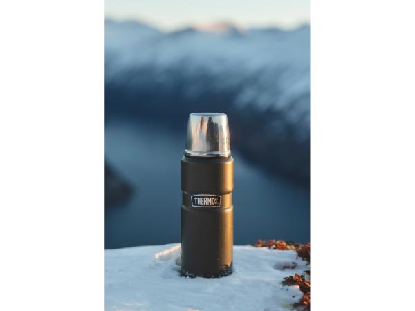 Thermos Stainless King 470 ml termoflaske i rustfrit stål. Låget kan bruges som kop, og flasken er velegnet til både kolde og varme drikke. Holder indholdet varmt i op til 18 timer og koldt i op til 24 timer.