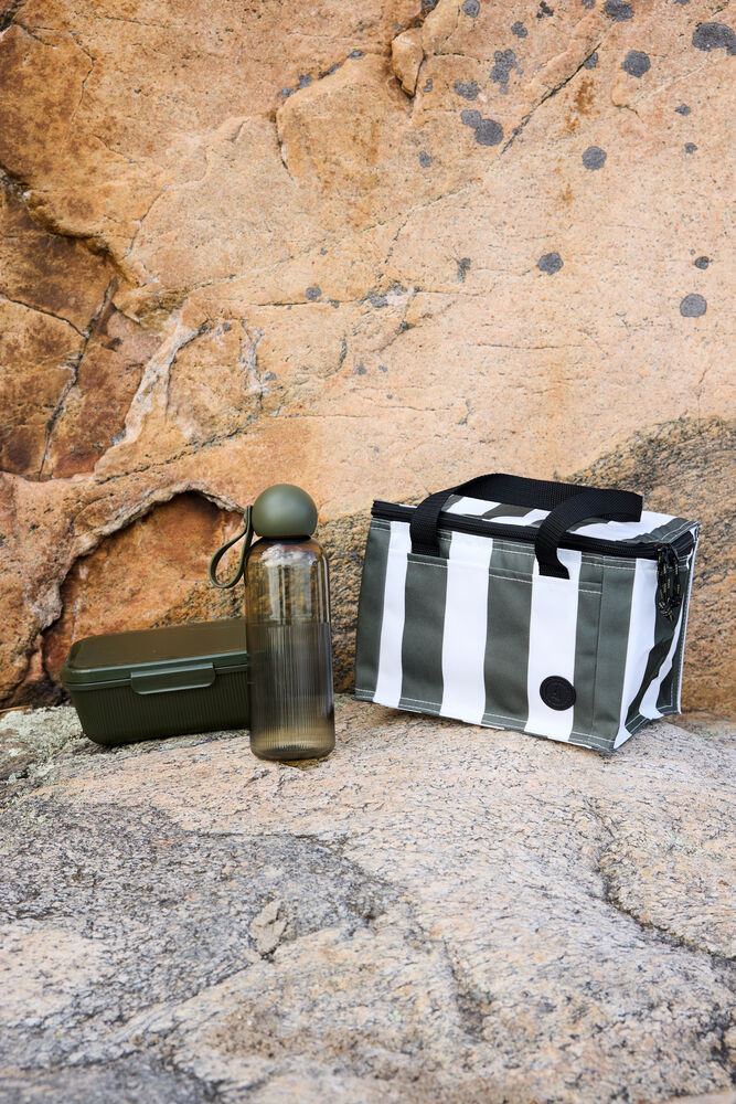 Den stilfulde City Stripe Cooler Bag i grøn/hvid er et kompakt og funktionelt valg til virksomheder, der ønsker at tilbyde et praktisk og bæredygtigt produkt. Tasken er designet til at holde mad og drikke friske, perfekt til både sommer- og vinterudflugter. Materiale: rPET (genanvendte PET-flasker), polyester og PEVA Letvægtsdesign: Kun 90 g — ideel til daglig brug Størrelse: 15 x 17 x 24 cm — kompakt, men rummelig nok til en madpakke Kapacitet: 3,2 cl Ekstra opbevaring: Frontlomme til småting Farve: Klassisk sort/hvid stribedesign En oplagt mulighed for virksomheder, der vil koble miljøbevidsthed med praktisk funktionalitet.