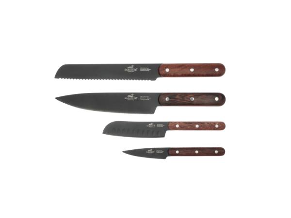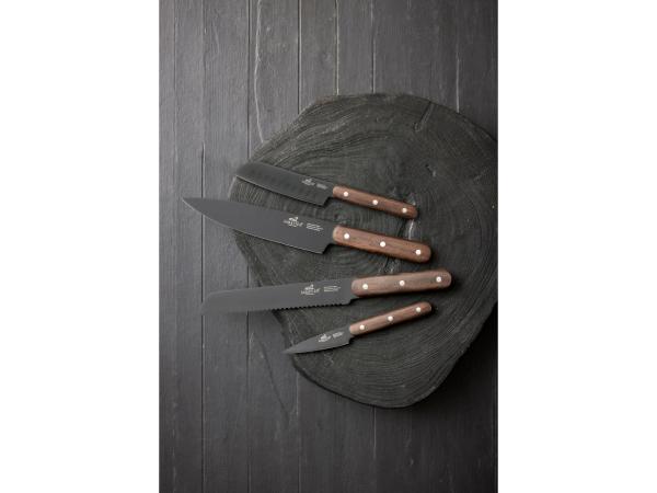 Phenix knivsæt med fire knive i Lion Sabatiers verdenskendte kvalitet og med håndtag i eksklusivt wenge-træ. De superskarpe knivblade er skabt af stærkt rustfrit stål (5Cr15MoV) og belagt med titanium.