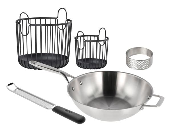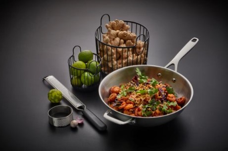 Med dette flotte sæt er du godt på vej til at kunne servere pad thai, den lækre klassiker fra det thailandske gadekøkken. Du får en flot wok fra Morsøs 79NORD-serie, et ultrafint citrusrivejern fra Blomsterbergs, en forførende enkel hvidløgspresser samt to luftige Inu bordkurve fra Zone, dia. 10,5 og 20 cm.