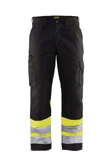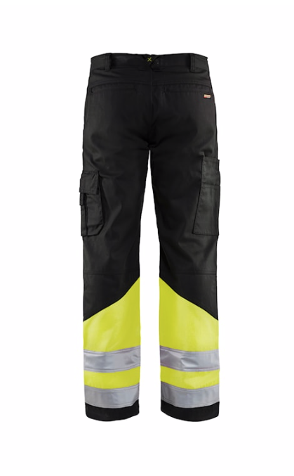 Let High Vis buks med en moderne pasform, god slidstyrke og knælommer. C-størrelser kan forlænges til ekstra benlængde. En funktionel buks i håndværker kvalitet. Certificeret i henhold til EN ISO 20471 klasse 1, sikkerhedsbeklædning med stor synlighed.