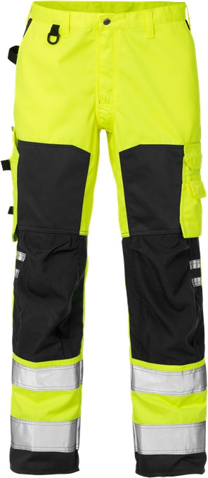 Hi Vis bukser med refleksdetaljer, blød bomuld indvendigt og CORDURA®-forstærkning på udsatte steder, fremstillet i smuds-, olie- og vandafvisende materiale.