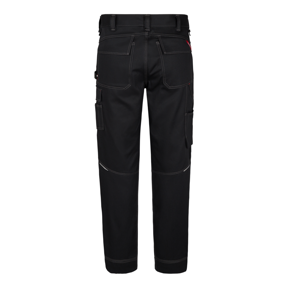 Funktionel håndværkerbuks med kontraststikninger i 100% bomuld. Optimal pasform med bl.a. ergonomisk formet og forstærket knæparti. To rummelige skrålommer foran. To baglommer med klap. Lårlomme med klap samt inddelinger til f.eks. skriveredskaber. Forstærket tommestoklomme med ekstra inddelinger og frithængende bund for optimal bevægelse. Regulerbar hammerstrop. Forstærket knælomme med to indstillingsmuligheder til knæpude. Forstærkning i bunden af buksebenene bagpå for ekstra slidstyrke. Reflekspipings midt på benet bagpå for øget synlighed. Bukserne har en ekstra bred oplægning, der er beregnet til at øge længden på buksen, såfremt der er brug for ekstra benlængde. En enkelt søm pilles op, og derefter er buksen med ekstra benlængde - og stadig sømmet op.