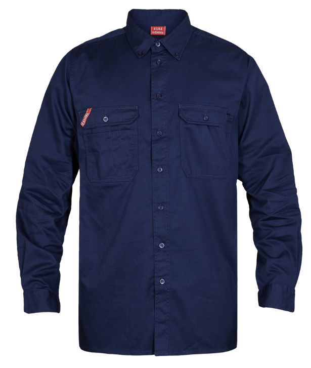 KVALITET 100% Bomuld, 210 g/m² VASK 4 o s b W • Button-down • To brystlommer • Lommerne har flere inddelinger og har bl.a. indstik til skriveredskaber • Viddelæg i ryggen for bedre komfort • Regulerbare manchetter