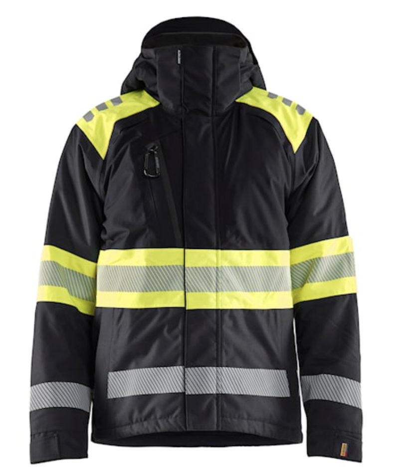 En meget slidstærk high vis vinterjakke. Jakken har quiltet for, er vind- og vandtæt med tapede sømme og har en behagelig, rummelig pasform for ekstra komfort. Hætten er aftagelig og tilpasset til hjelme og høreværn. Certificeret i henhold til EN ISO 20471 Klasse 1. Samcertificeringsgruppe D. Findes også i damemodel 4470.