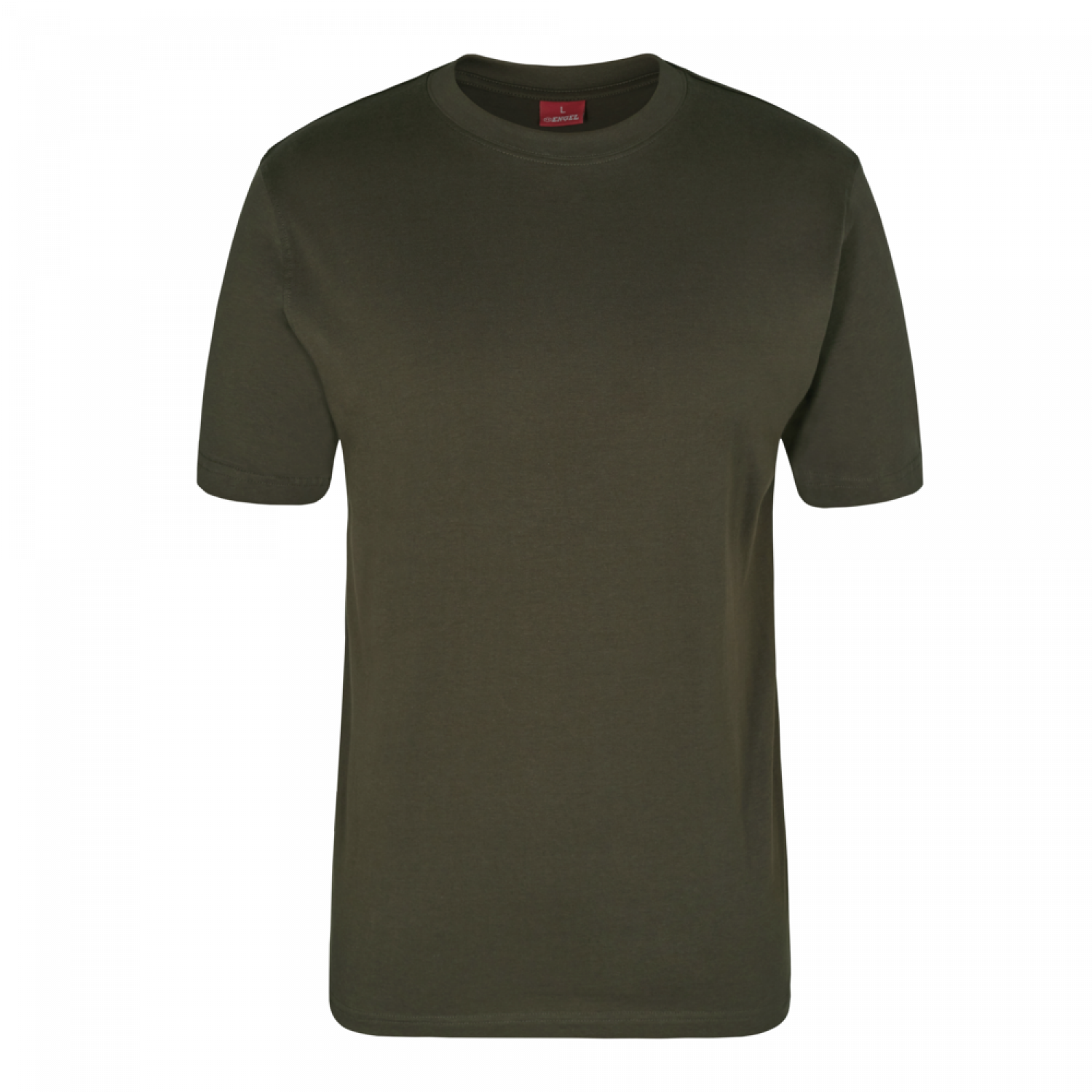 T-shirt med korte ærmer. Rib i hals. Kontraststikninger ved hals, skuldre og ærmegab.