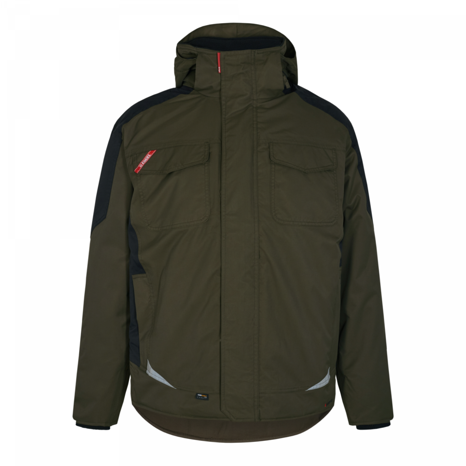 Vandtæt og åndbar pilotjakke med høj hals og forlænget bagstykke. Skjult lynlås og velcrolukning i front. To rummelige stiklommer med lynlås foran. To store brystlommer med klap. Napoleonslomme med lynlås i venstre side. To store rummelige inderlommer til opbevaring af bl.a. dokumenter samt inderlomme med lynlås til f.eks. mobiltelefon. Aftagelig hætte. Regulerbar vindfang i bund og rib ved håndled samt i kraven formindsker risikoen for træk. Forstærkning på albuer for øget slidstyrke. Reflekser på skuldre samt for og bag for øget synlighed. Tapede sømme. Lynlås i for for anbringelse af tryk/broderi.