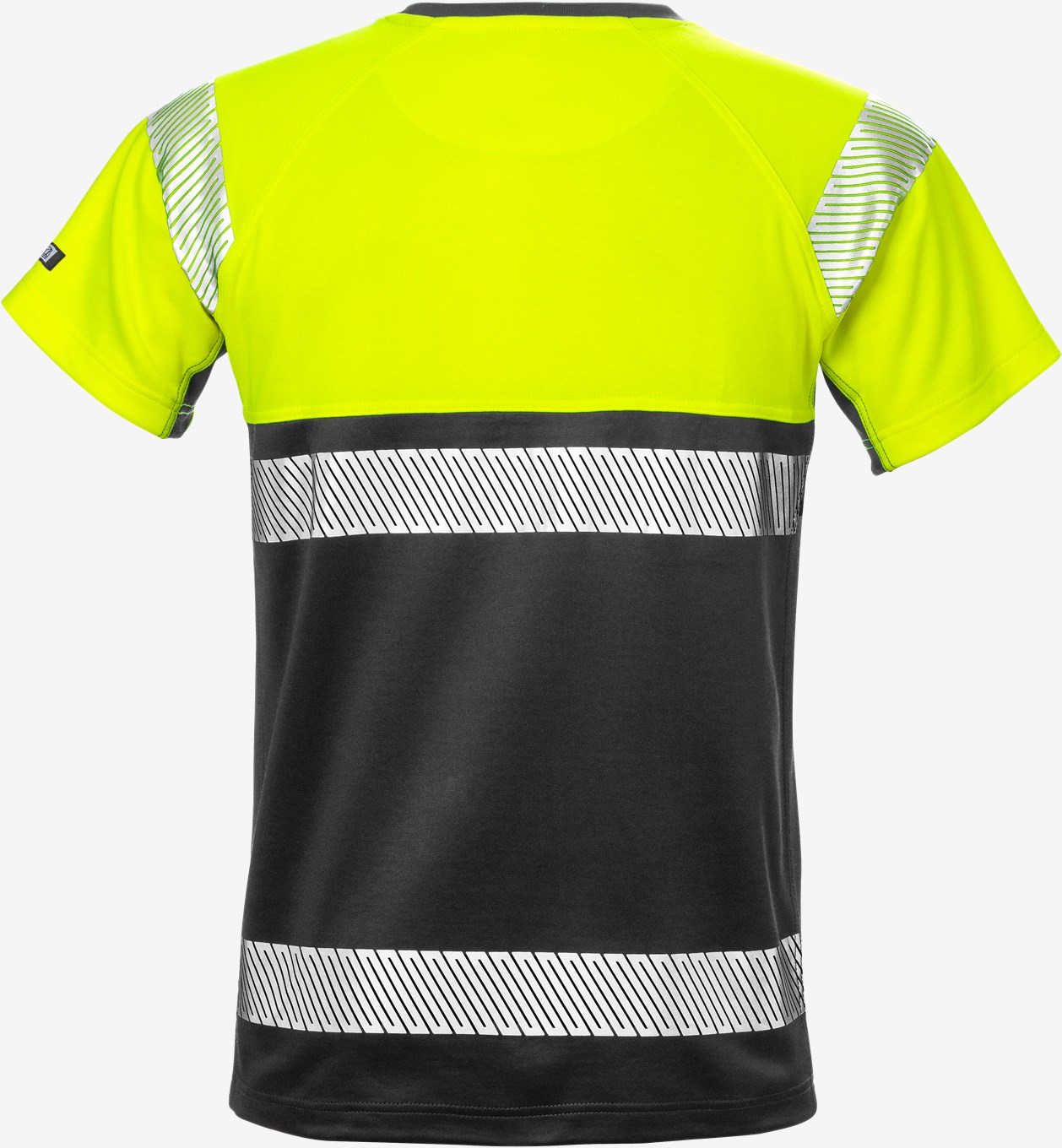 Ribstrikket krave / Raglan ærmer / Reflekser påtrykt / Godkendt i henhold til EN 13758-2 UPF 40 + Solar UV beskyttende egenskaber og EN ISO 20471 kl.1 / For HiVis certificerede kombinationer, klassificeres dette produkt som U2 / Godkendt efter 25 vaske / OEKO-TEX® certificeret.