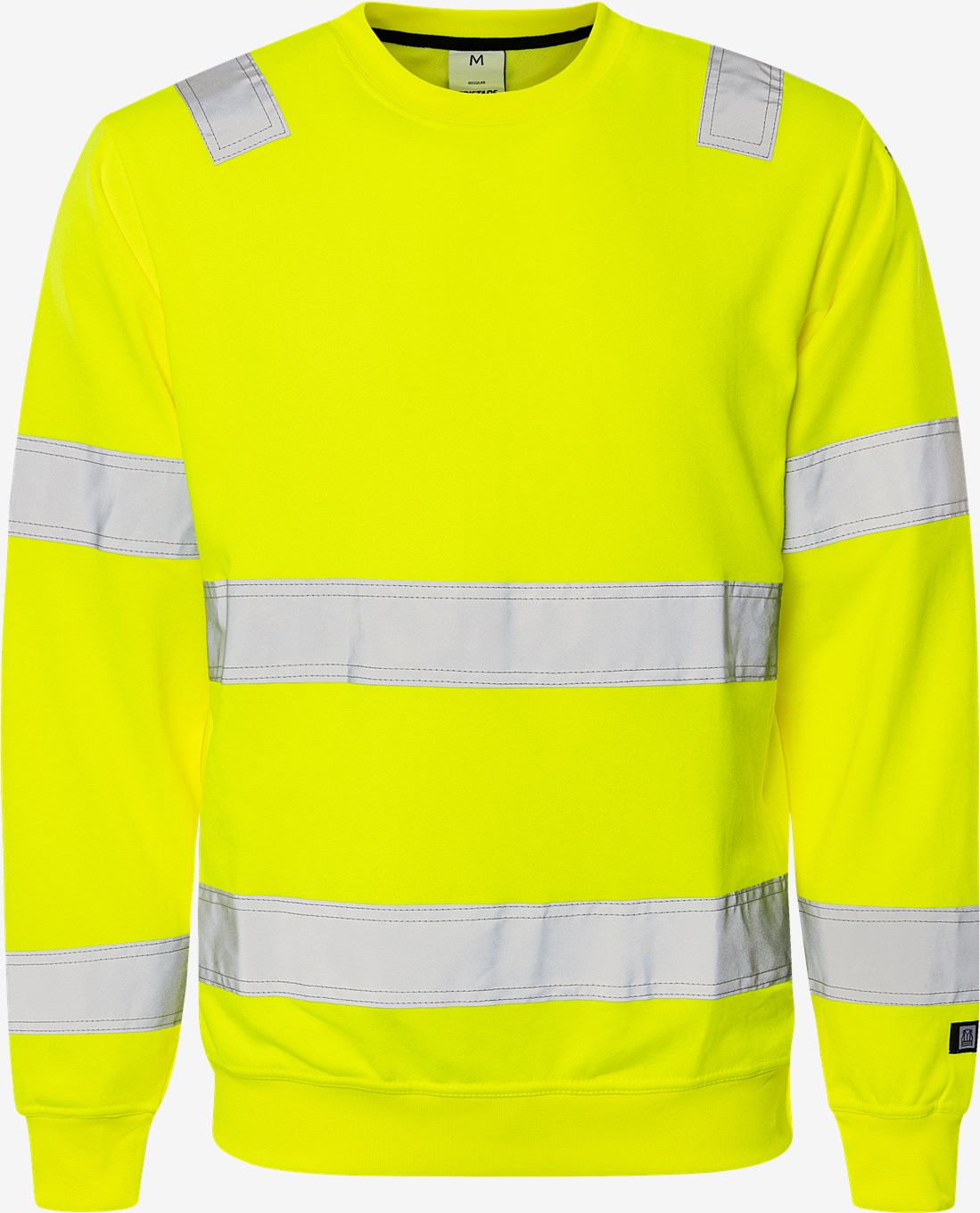 Rund hals / Refleksbånd over skuldrene / Fold på 5 cm ved refleksbånd for bedre komfort / Ribstrikket bund og ærmer / Godkendt i henhold til EN 13758-2 UPF 40 + Solar UV beskyttende egenskaber og EN ISO 20471 kl.3 / Godkendt efter 25 vaske / Godkendt til industrivask i henhold til ISO 15797 / OEKO-TEX® certificeret.