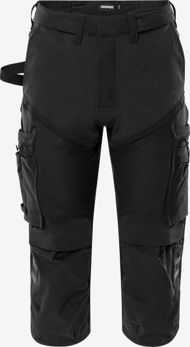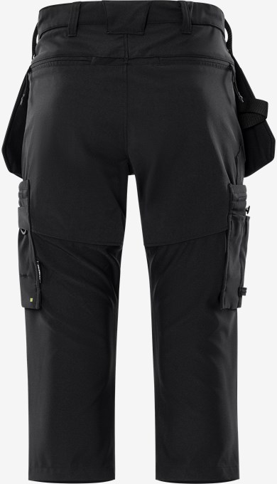 Håndværker-knickers fremstillet af letvægtsmaterialer med 4-vejs-stretch, som hovedsageligt er fremstillet af genanvendt polyester. Behagelige arbejdsbukser med aftagelige løsthængende lommer, forstærkninger i ripstop-stretch og knælommer med stretch. Koncept: Haverdal