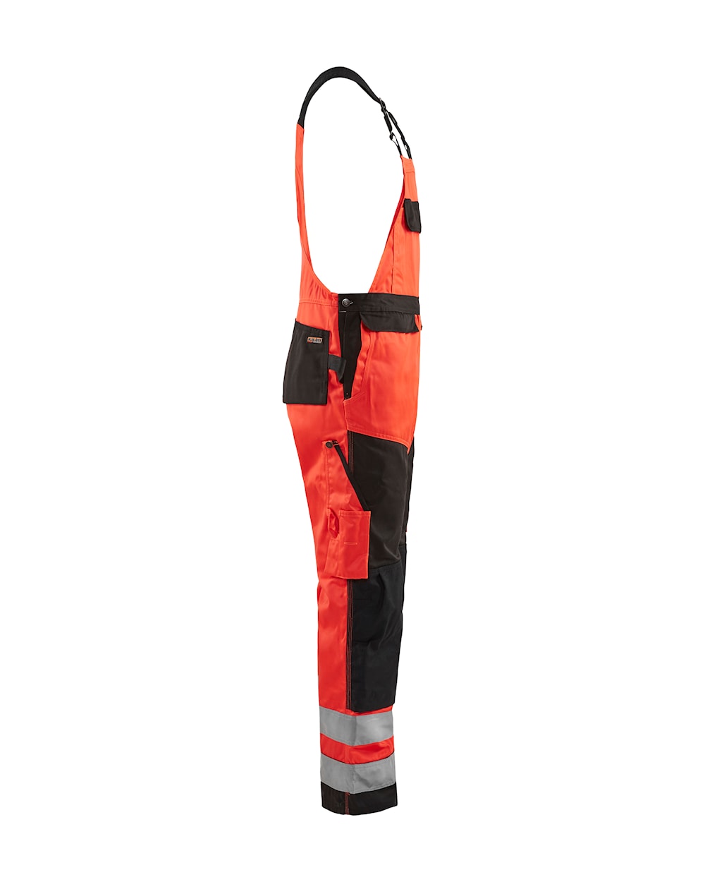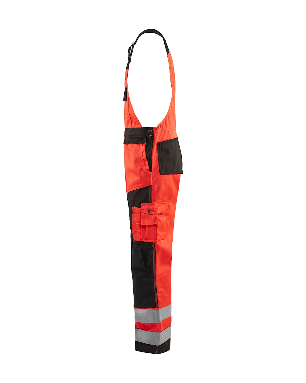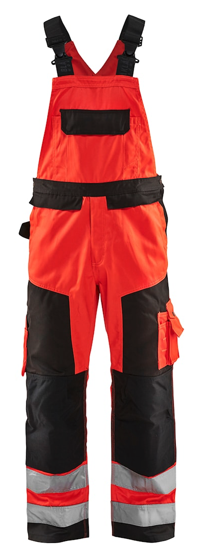 High Vis overall med knælommer og skrå lommer foran. Tommestoklomme og knivlomme. Modellen har en også en lårlomme med telefon- og blyantlomme, baglommer og hammerholder strop. Løse sømlommer sælges seperat - model 2183. 65 mm refleks. Certificeret i henhold til EN ISO 20471, klasse 2.