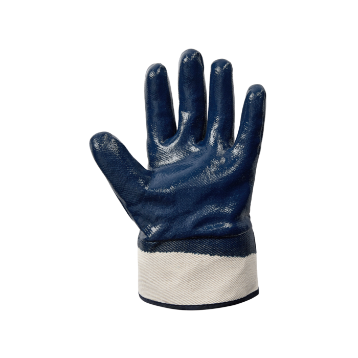 Industrial NBR er en konkurrencedygtig model, der er velegnet til tungt arbejde i de fleste industrier. Det er det perfekte valg for dem, der arbejder i våde miljøer inden for f.eks. kloakering, transport eller industri. Industrial NBR er en fuldt dyppet nitrilhandske med en let jersey bomuldsforing, der beskytter fingrene. Handsken har en bred og stærk stivnet canvasmanchet, som giver dig ekstra beskyttelse omkring håndleddet, samtidig med at handsken er nem at tage af og på.