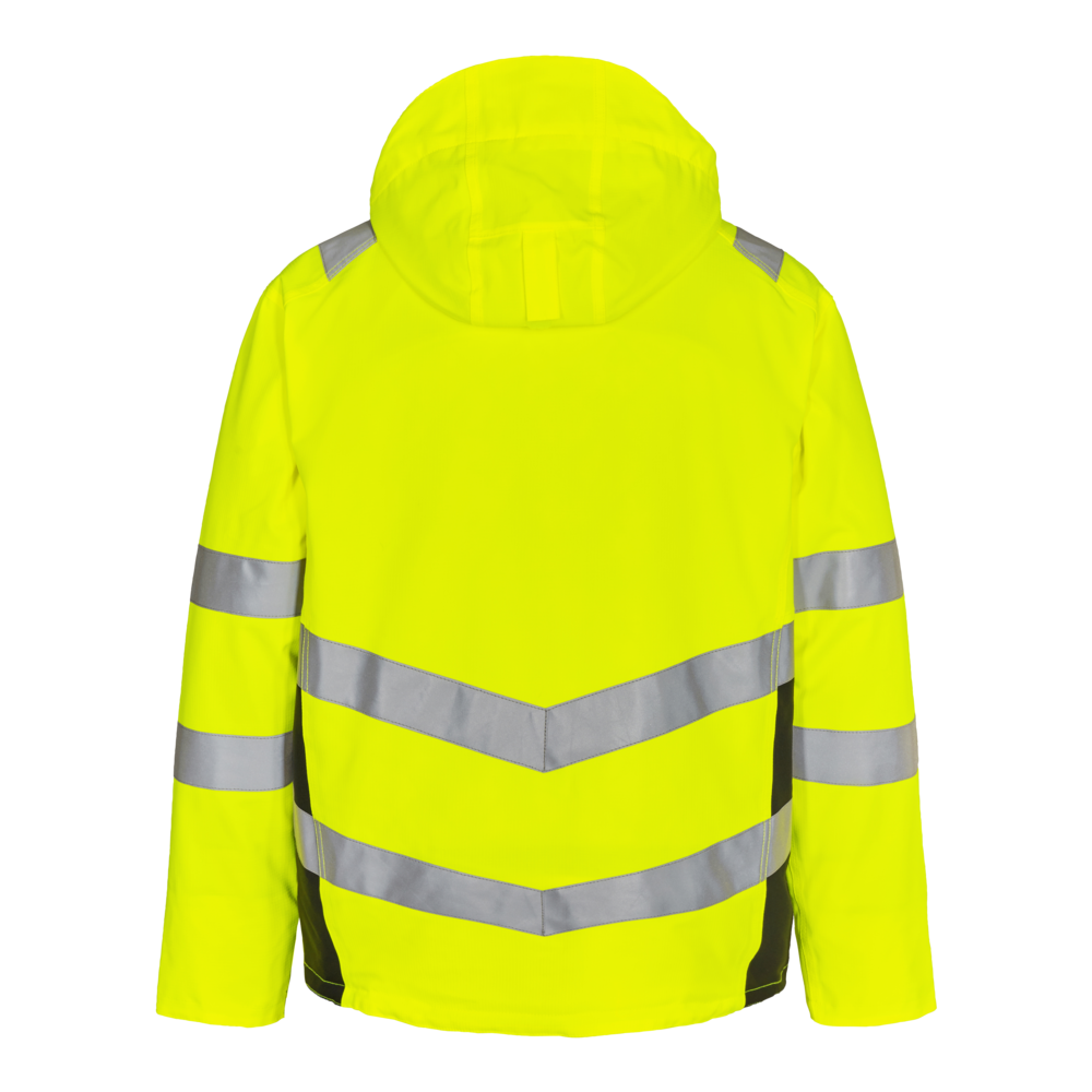 Åndbar, vand- og vindtæt vinterjakke med tapede sømme og i moderne snit. Jakken har høj hals og forlænget bagstykke. Dobbelt stolpelukning med lynlås lukning, samt velcro i front. Rummelige sidelommer, brystlomme og indvendig lomme, alle med lynlås lukning. Aftagelig hætte med reguleringsmulighed samt plads til arbejdshjelm. Regulerbart vindfang i bund, der sikre varmen i uforudsigeligt vejr. Rib ved håndled samt i kraven der formindsker risikoen for træk. Lynlås i for, der giver mulighed for tryk/broderi placering. Reflekser over skuldre, samt omkring ærmer og liv. Beklædningsklasse 3. Testet efter 50 vaske.