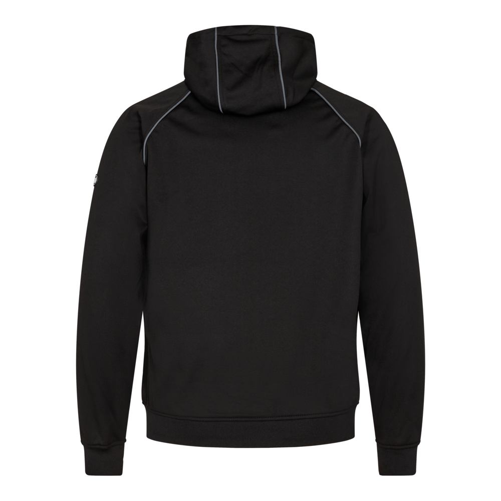 Funktionel softshelljakke med quiltet forstykke. Lynlås i front. To rummelige lommer samt brystlomme - alle med lynlås. Jakken har rib forneden samt i ærmerne. Reflekspipings for og bag samt på hætten for øget synlighed.