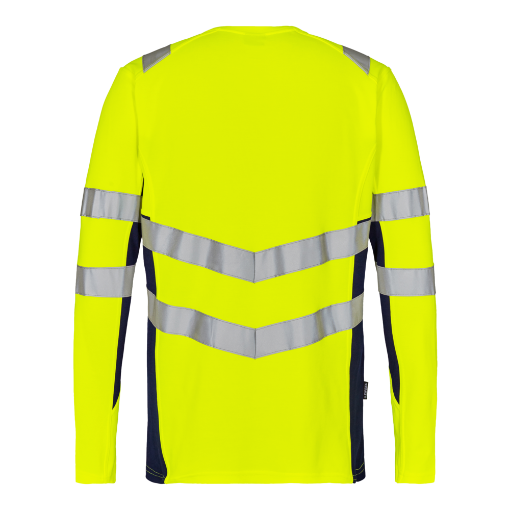 Behagelig og lækker fluorescerende langærmet T-shirt i moderne snit. T-shirten er fremstillet i behagelig pique stof med bomuld på indersiden for større komfort. Rib i hals. Reflekser på skuldre samt omkring ærmer og liv. Beklædningsklasse 2. Testet efter 25 vaske.