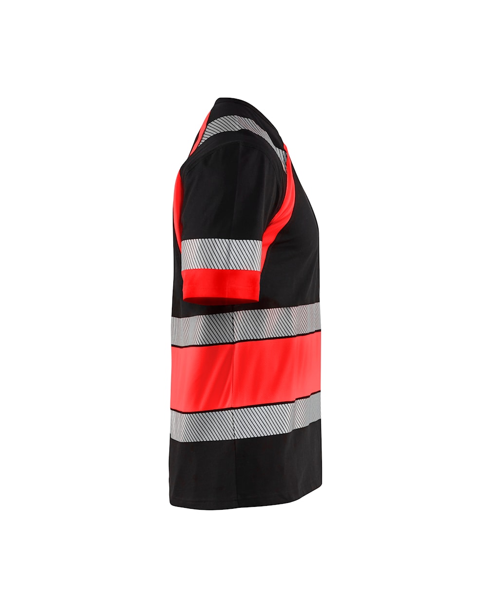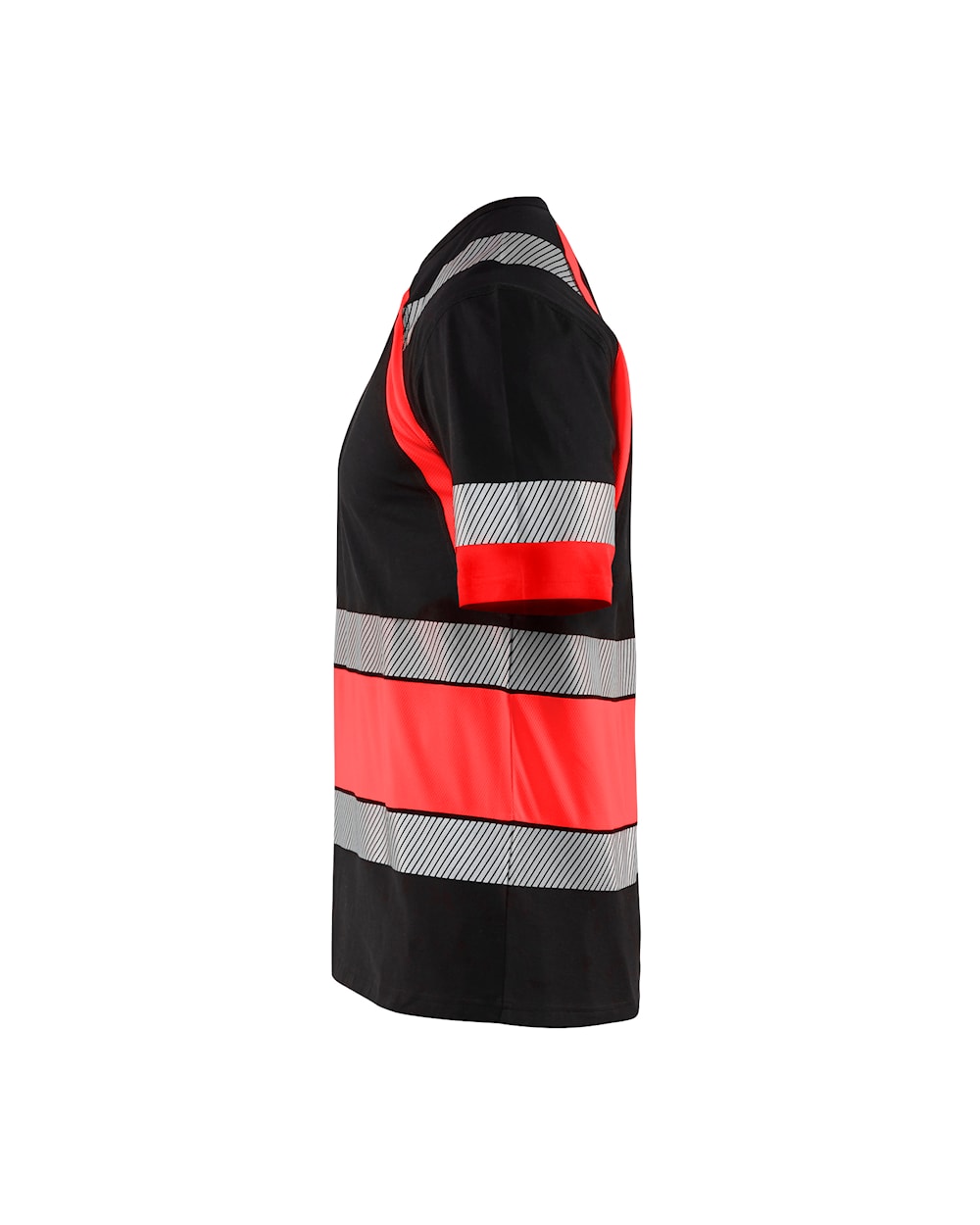 Segmenteret refleksdetaljer giver god ventilation og stretch egenskaber som giver optimal bevægelsesfrihed. De mørke områder på t-shirten er 100% bomuld, og High Vis områderne er 100% polyester.