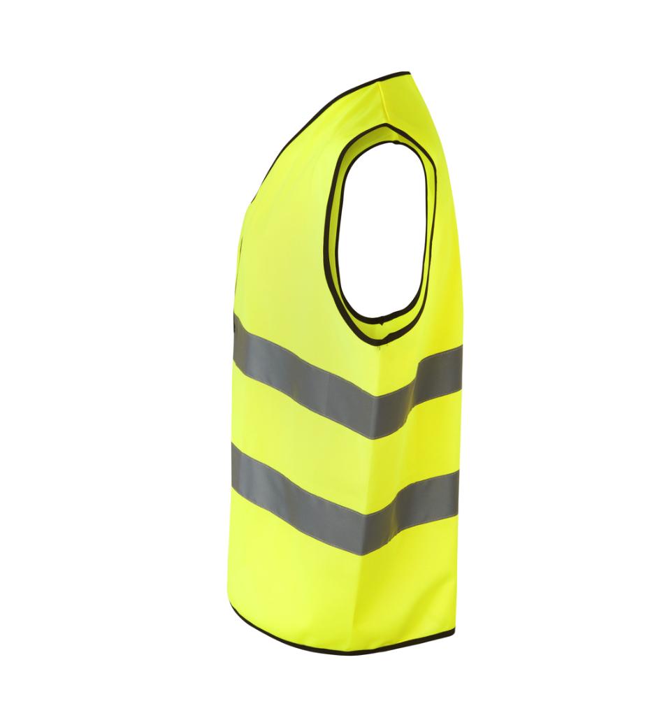 Fluorescerende arbejdsvest med lukning på front. Vesten er godkendt efter ISO EN20471 standard – kategori 2.S og M i Klasse 1 og L, XL og 2XL i Klasse 2.
