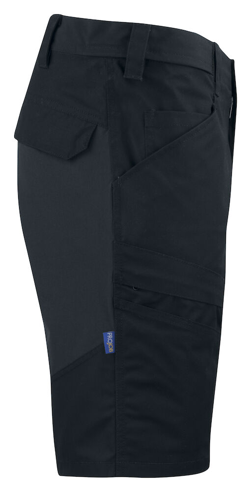 Shorts i stretchmateriale på hele sædespartiet og i skridtet. To lårlommer med lynlås. To baglommer med klap. Mulighed for påsætning af ProJob hængelommer art. 9042