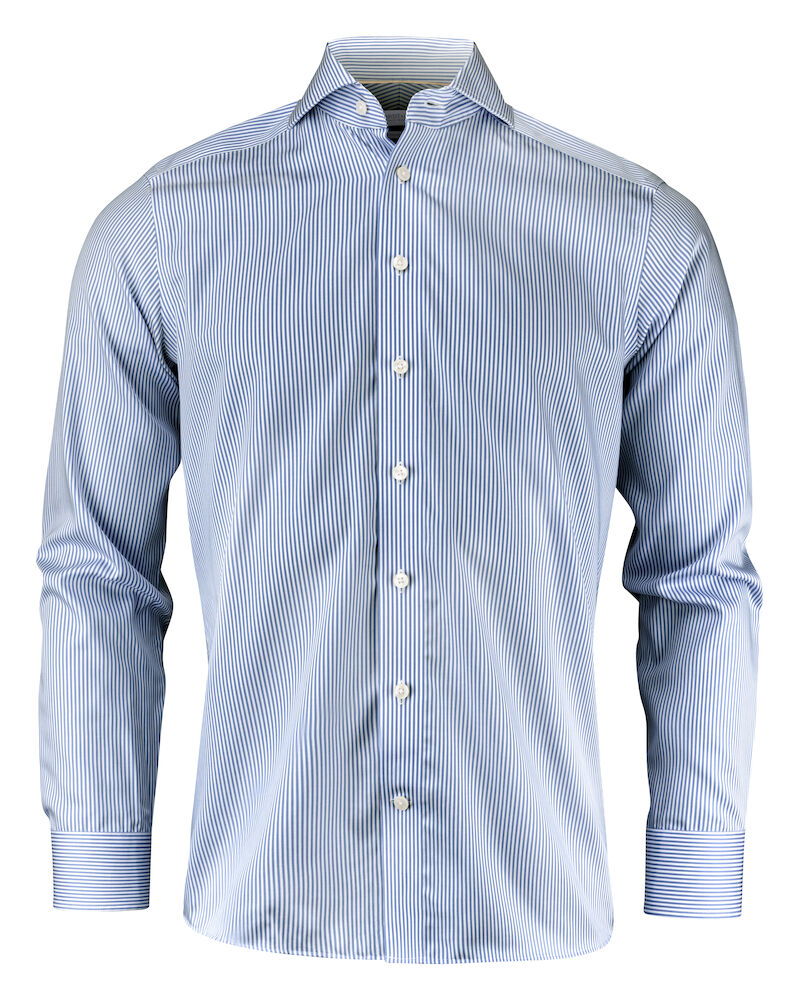 Klassisk twill skjorte med moderne skræddersyede detaljer. Patenteret miljøvenlig Easy Care behandling giver en unik finish, der gør tekstilet strygefri, blødt og hurtigttørrende. Todelt bærestykke sikrer blødt kurvet udseende over skuldrene og giver en større bevægelsesfrihed. Tapede sømme hjælper skjorten til at stå skarp vask efter vask uden folder. Semi cut away krave. Lange ærmer. Enkelte skråsnit på manchetter med huller til manchetknapper. 4 mm knapper giver en god komfort og et moderne udseende. Tåler maskinvask. Kurvet snit på nederste del af skjorten. Fås i regular, slim og damemodel.