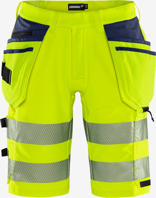 Mere bæredygtig HiVis håndværker stretchshorts lavet af genbrugs- og biobaserede materialer. Fuld 4-vejs stretch og ekstra stretchpaneler i taljen, som giver fremragende komfort og bevægelsesfrihed. Med EPD (Environmental Product Declaration). Koncept: Stiby