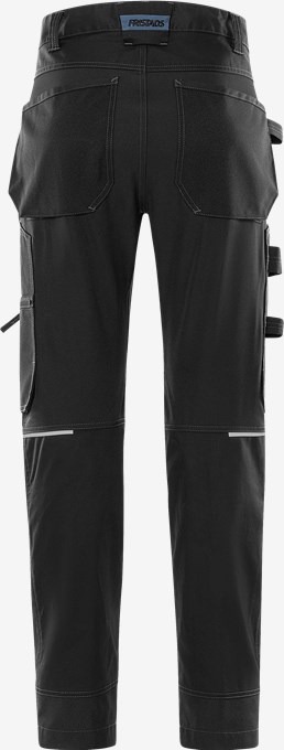 Arbejdsbukser med paneler i 4-vejs stretchstof, udstyret med alle de nødvendige funktioner til håndværkere. Fremstillet i et let og slidstærkt materiale med mekanisk stretch, delvist af genanvendt polyester. Med EPD (miljøvaredeklaration). Koncept: Alnaryd