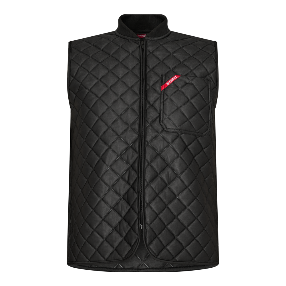 Termovest med lang ryg. En brystlomme. Ribkant i krave. Svejset, så trådbrist undgås.