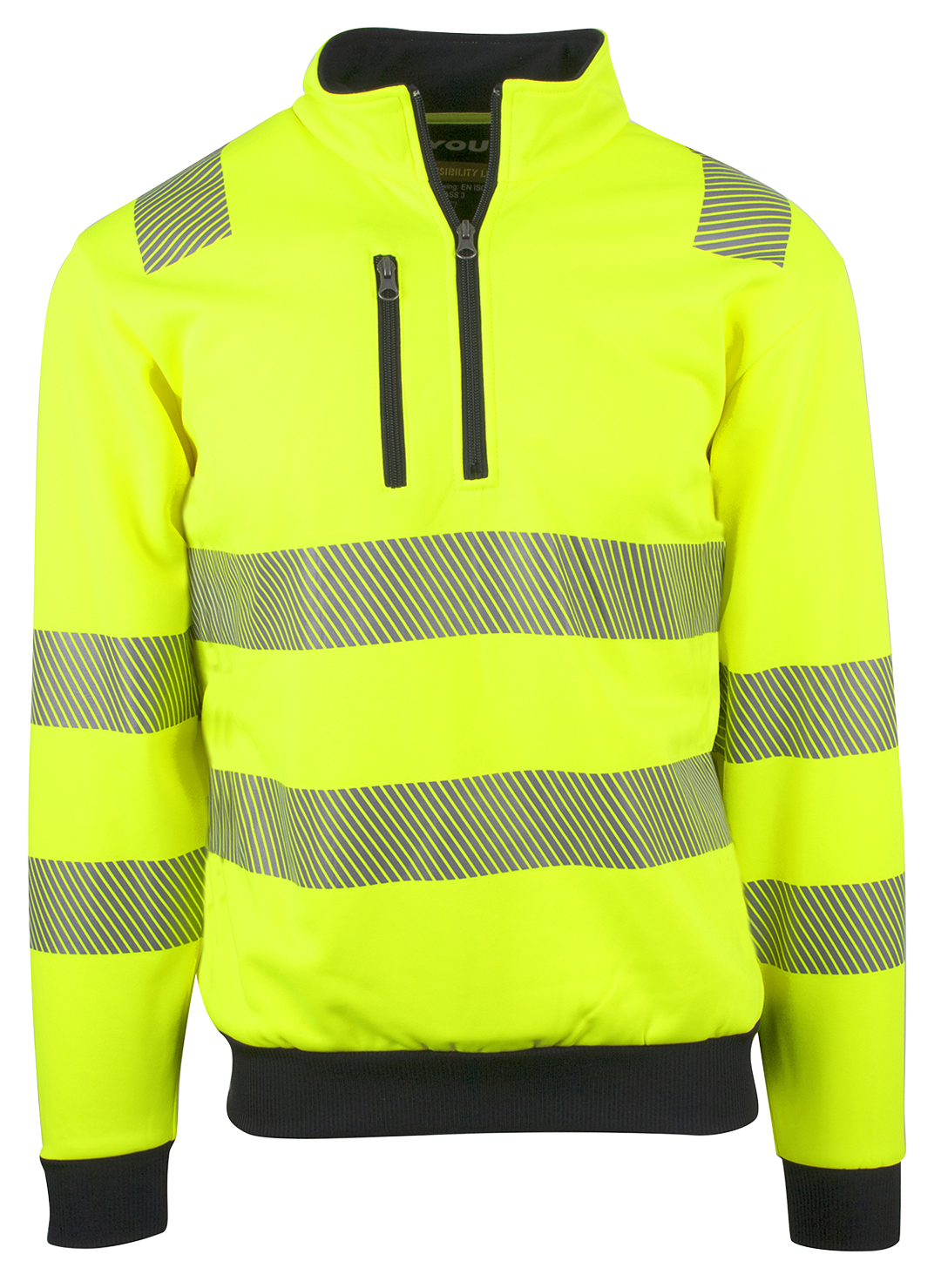 Unisex zipsweat med elastisk refleks på skuldre, ærmer og mave. ¾ lynlås og brystlomme med lynlås. Kontrastrib på ærmer og linning. Multimediaport i lomme. CE-mærket EN 20471, klasse 3. 260 g/m2. 100% polyester.
