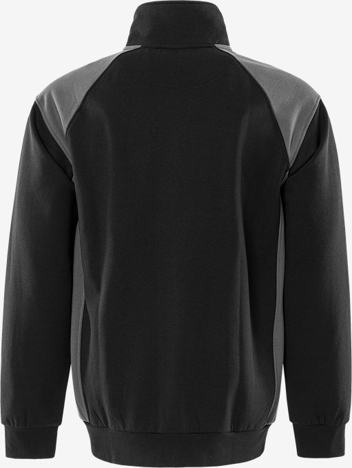 Sweatjakke fremstillet i genanvendt polyester og bomuld. En slidstærk og behagelig sweatshirt i 2-farvet design med lynlås i fuld længde og børstet inderside. Godkendt til industrivask. Koncept: Skarup