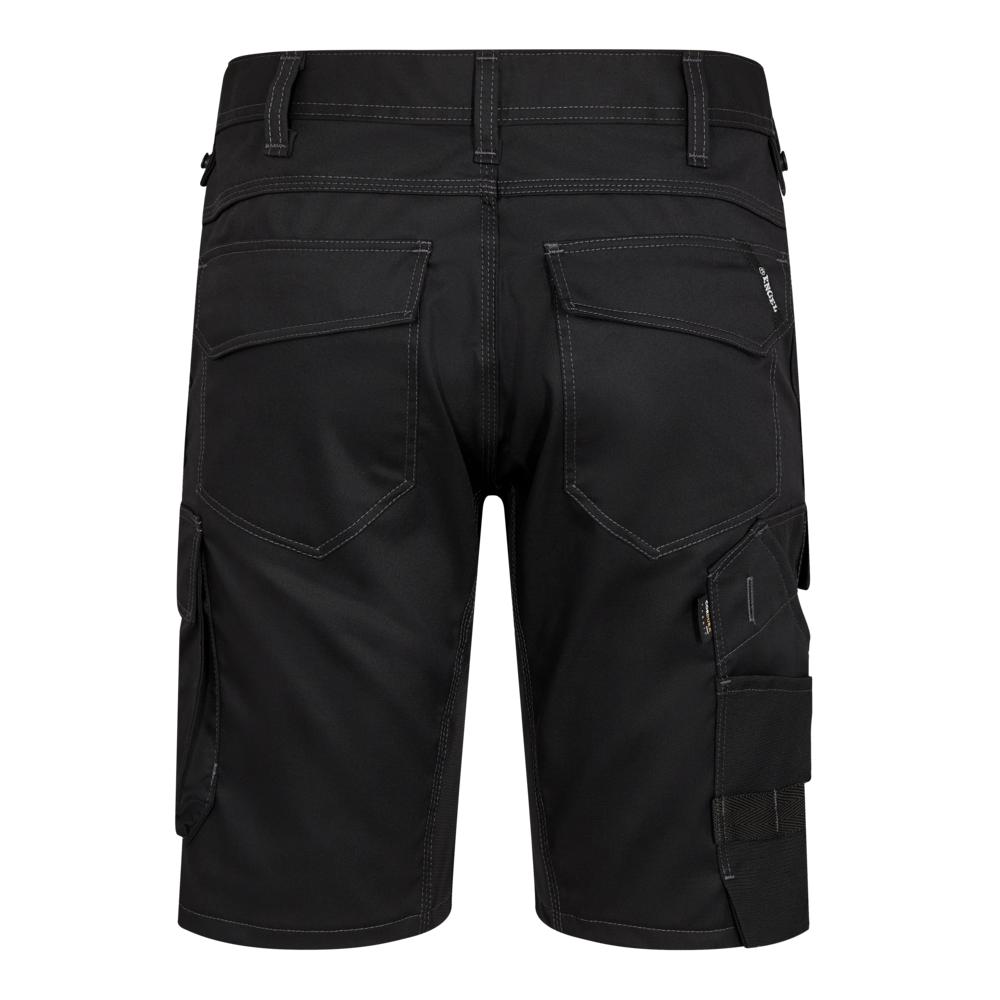 Strækbare, funktionelle håndværkershorts med en smallere pasform og mange praktiske detaljer. Med indsatser af ekstra strækbart og ventilerende materiale i panelet i indersømmen bliver komforten ekstra høj. D-ring foran til påsætning af f.eks. ID-kort. To baglommer. Telefonlomme med klap på højre lår. I venstre side er der en lårlomme med klap. Lårlommen har en ekstra lomme med lynlås. Forstærket tommestoklomme med ekstra inddelinger og værktøjsstropper. Lårlommen og tommestoklommen har begge frithængende bund for optimal bevægelse. Der er mulighed for at montere hængelommer (9360-307).