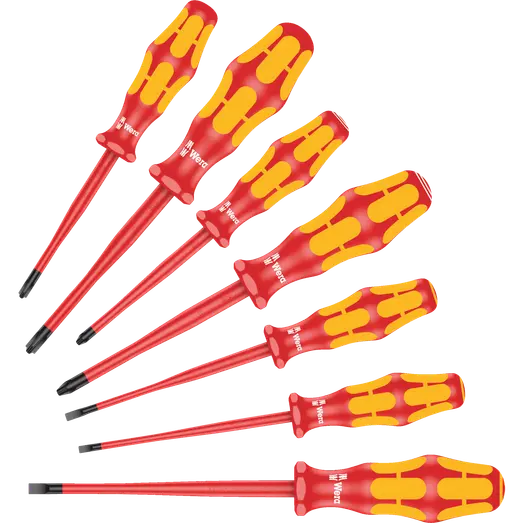 7 VDE ISS Kraftform skruetrækkere med reduceret klingediameter samt delvis mindre grebsdiametre, så der også kan skrues i snævre arbejdssituationer samt nå og dreje dybtliggende skrue- og fjederelementer.