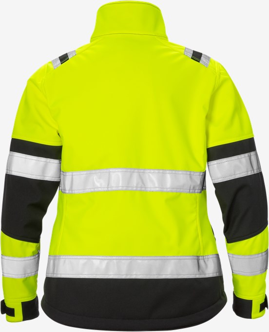 HiVis jakke i kraftigt og strækbart softshellmateriale med en moderne, feminin pasform og funktionelle lommer. Optimal beskyttelse mod vind og nedbør.